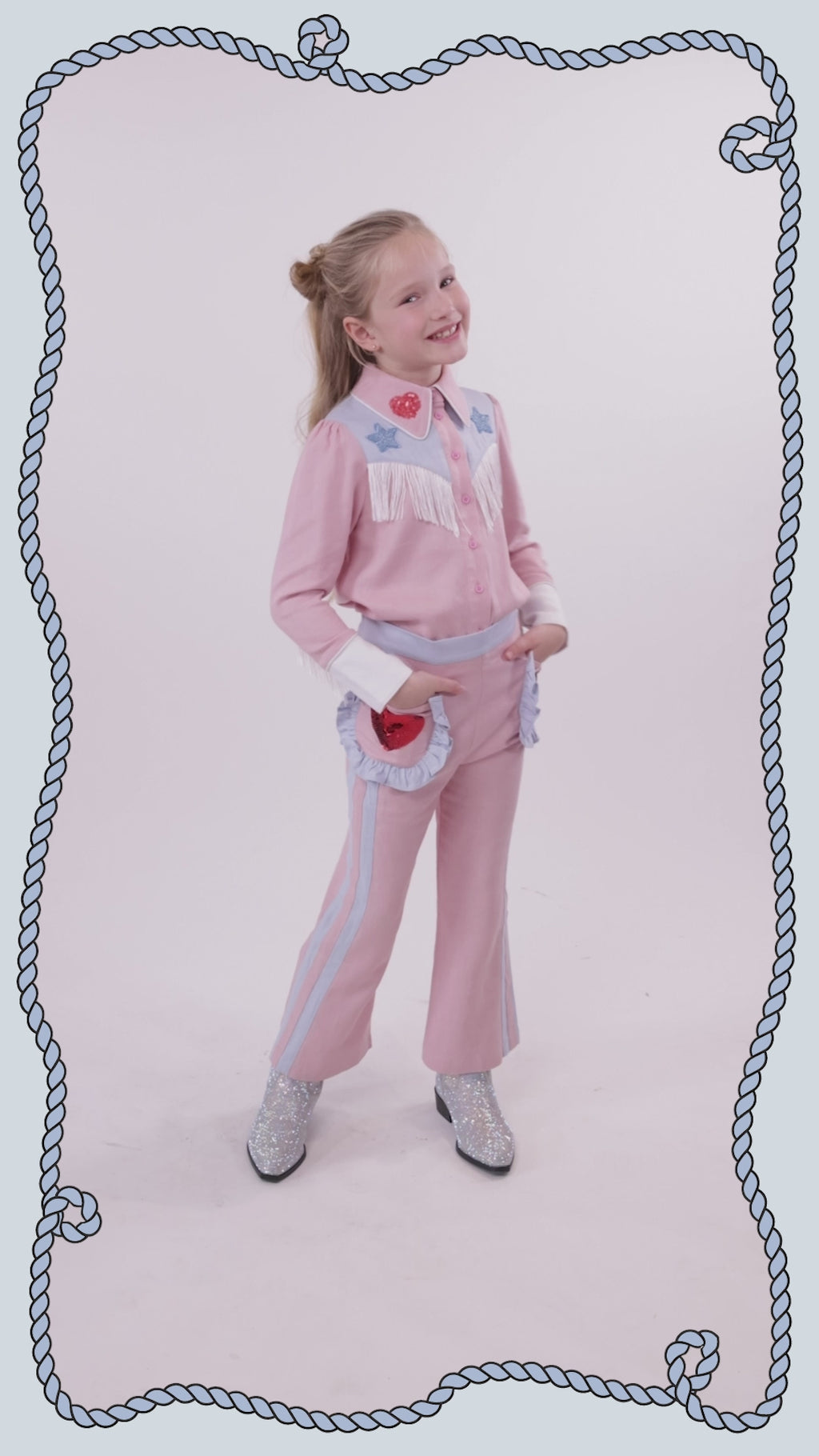 Stride into style with the Lone Star Boot Cut Pants in Candy Floss Mix, where cowgirl-cool meets a touch of sparkle! Crafted from a breezy linen blend, these boot cut pants feature contrast ruffle pockets adorned with a dazzling sparkly heart. Perfect for little cowgirls who love to shine and stomp in style from sunrise to sunset. Pair with our Lone Star Shirt for the full look!